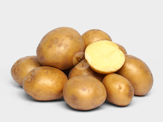 A high-yielding, chip-grade variety with uniform round shape, red skin, and high dry matter. Ideal for chipping, baking, and boiling. Susceptible to bruising; best stored under controlled conditions.